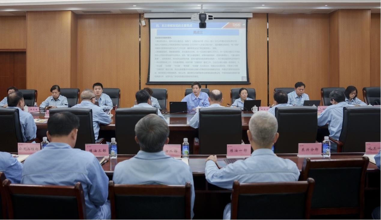 末次会议上,王铁庄组长代表审核组向中科炼化公司各级领导对本次审核的高度重视、精心策划、高效组织、积极迎审表示感谢,对审核情况进行总结通报。审核组对中科炼化管理体系的有效性给予了高度评价,对中科炼化公司在创新、人才、强基固本等4个方面亮点进行了简述,对开具的不符合进行了再次确认,对企业管理体系运行中的典型问题进行了通报、剖析并提出了明确的改进建议。