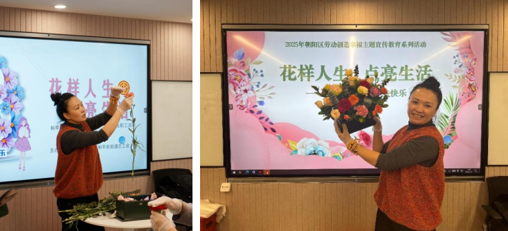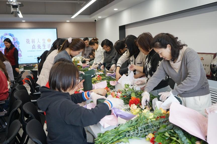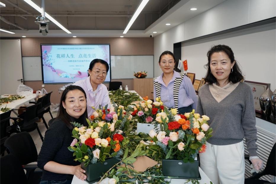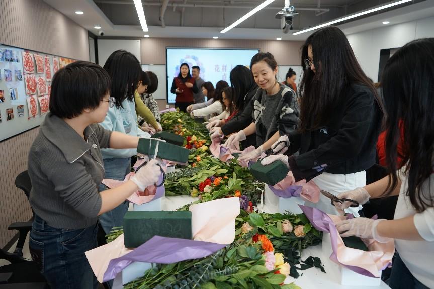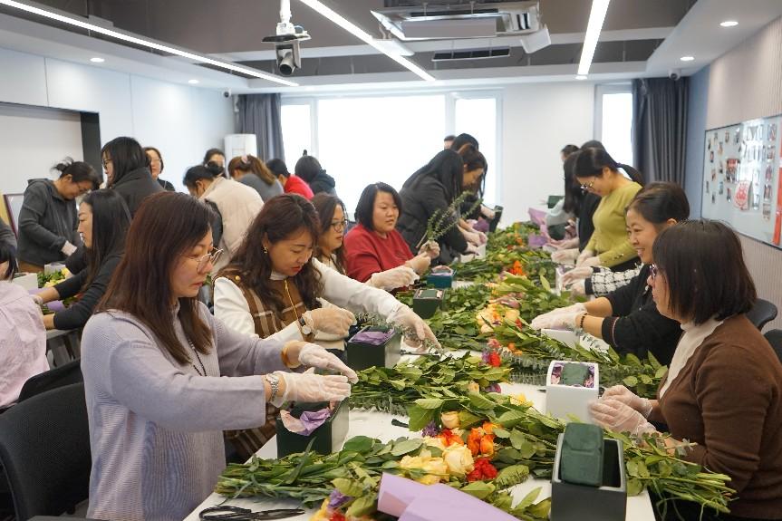 三月芳菲至,花香满庭芳。在第115个“三八”国际劳动妇女节来临之际,3月7日下午,由朝阳区和平街道工会组织的“花样人生·点亮生活——用鲜花给生活加些快乐”主题艺术插花活动在三星九千温情开展。公司各部门女职工齐聚一堂,以花为媒、以艺会友,在馥郁芬芳中共赴春日之约。
