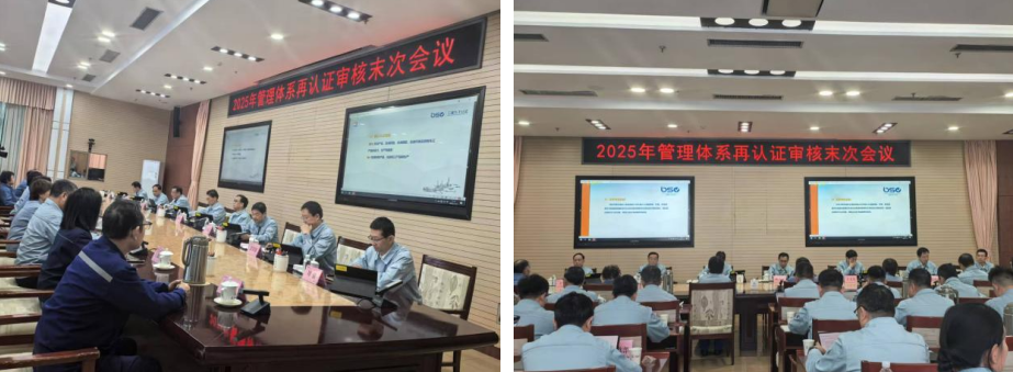 2025年10月27日至11月7日,北京三星九千认证中心有限公司(以下简称三星九千)对中国石油化工股份有限公司齐鲁分公司(以下简称齐鲁石化)的质量、环境、职业健康安全及能源一体化管理体系进行了再认证审核工作。末次会议于11月7日顺利召开,齐鲁石化党委书记李刚、总经理陈齐全等公司领导,及各相关部门负责人,与三星九千审核团队共同出席会议。