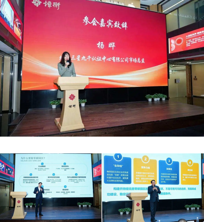 会议期间,中国节能协会碳中和专业委员会副秘书长王挺进行专题讲座,系统解读了国家零碳园区建设的政策驱动、宏观目标与落地路径。炜衡创始合伙人杨黎明以《打造新质服务力——零碳园区律师服务亮点》为主题进行了专题分享,详细阐述了律师在零碳园区建设中可以提供的多维服务。三星九千市场总监杨晔从第三方技术机构角度,分享了零碳转型的法治需求,剖析了零碳实践中碳数据权属争议、绿色金融合规、碳资产交易风险等具体法律挑战,明确了零碳转型不仅是技术问题,更是法律问题的观点。提出了在碳数据治理(如区块链存证、欧盟碳关税CBAM等跨境数据合规)、碳资产开发合规审查、ESG提升服务等领域与法律界深度融合的清晰合作构想。