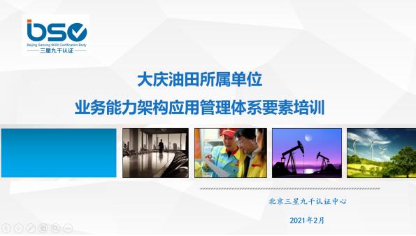 2021年2月18日(正月初七),春节过后第一天,大庆油田举办了所属单位业务能力架构应用管理体系标准要素线上培训。培训的开展意味着大庆油田所属单位岗位责任制综合管理体系建设工作正式复工,标志着大庆油田所属单位岗位责任制综合管理体系建设工作第三阶段“识别业务能力应用管理体系标准要素”正式启动。