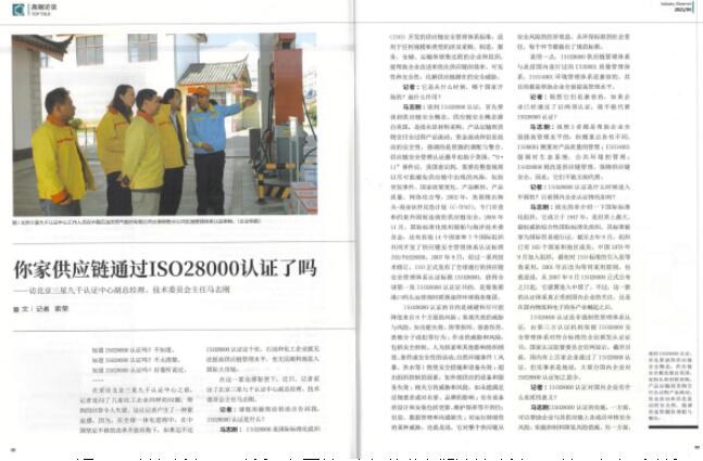 近期,《中国石油和化工产业观察》杂志社记者就ISO28000供应链安全管理体系认证情况到中心进行专题采访。中心副总经理马志刚接受了采访。