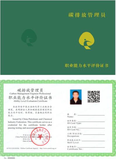 培训证书:申请碳排放监测员、核算员、核查员、交易员和咨询员其中一个工种参加培训,并经考试合格后由中国石油和化学工业联合会颁发《碳排放管理员职业能力水平评价证书》,证书查询网站:http://www.cemcb.org.cn。