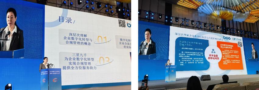 本次大会主题为“聚焦专精特新 实现经济高质量发展”。北京三星九千认证中心有限公司管理者代表、技术总监孙竹君受邀参加大会,并在中国“专精特新”中小企业发展高峰论坛“数字化赋能、精益管理”主题论坛上发表《数字化转型夯实企业全面合规管理》主题演讲。