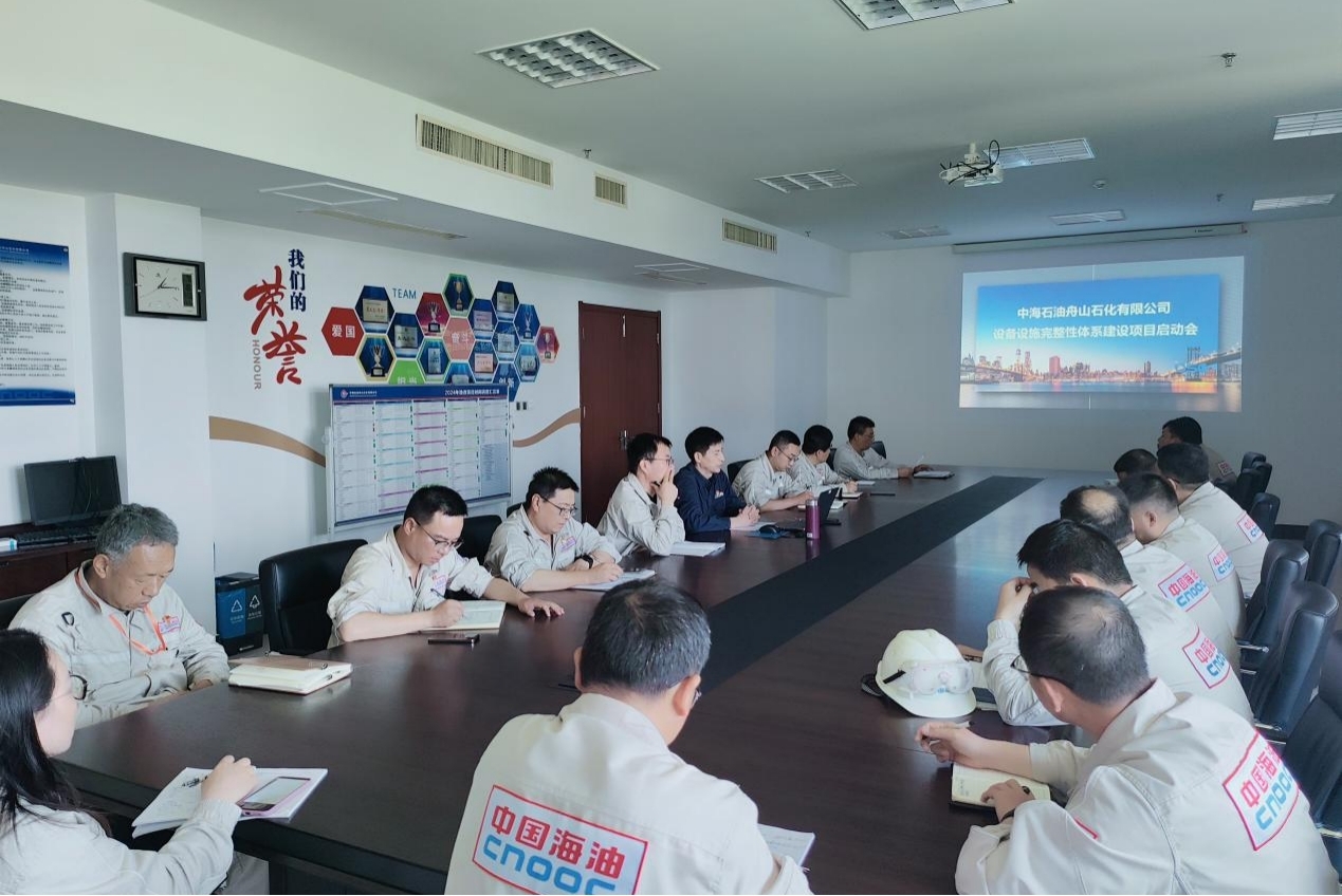 2024年7月18日下午,中海石油舟山石化有限公司(以下简称舟山石化)设备完整性管理体系建设项目启动会正式召开。舟山石化总经理李忠才、党委书记兼设备副总经理董维光出席会议并发表重要讲话,公司领导班子成员、各部门和单位负责人参加了会议。北京三星九千认证中心有限公司(以下简称三星九千)技术服务组参加了会议。