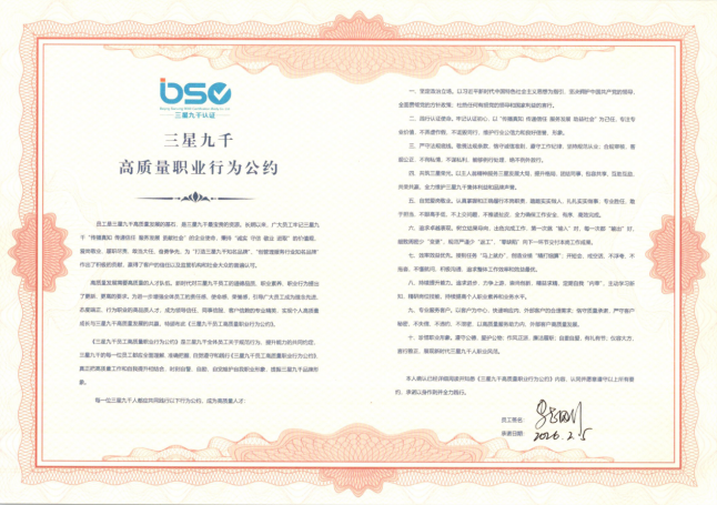北京三星九千认证中心有限公司(简称“三星九千”或“BSC”),注册成立于1996年7月,由中国石油化工集团有限公司、中国石油天然气集团有限公司、中国石油和化学工业联合会联合出资组建,是中国国家认证认可监督管理委员会首批批准(批准号:CNCA-R-2002-031)成立、中国合格评定国家认可委员会认可(在册号:CNAS C031-M)的集认证、技术服务、培训、标准科研于一体的专业化、高技术服务机构。作为中国国家认证认可监督管理委员会批准的管理体系认证机构、服务认证机构、产品认证机构,三星九千可为各类组织提供:质量管理体系认证(含工程建筑施工企业质量管理体系认证、武器装备质量管理体系认证)、环境管理体系认证、职业健康安全管理体系认证、信息安全管理体系认证、能源管理体系认证、测量管理体系认证、合规管理体系认证、社会责任管理体系认证、培训管理体系认证、供应链安全管理体系认证、HSE管理体系认证等管理体系认证服务;提供建筑工程和建筑服务认证、批发和零售业服务认证、不动产服务认证、科学研究服务认证、支持性服务认证、在收费或合同技术上的生产服务认证、污水和垃圾处置、公共卫生及其他环境保护服务认证等服务认证服务;提供矿和矿物;电力、可燃气和水化工类产品认证服务。三星九千下设管理研究中心,专精于企业管理技术研究,可为各类组织提供管理体系整合提升、安全生产、风险合规、制度流程优化、二方评审、HSE履职能力评估等管理技术提升服务以及个性化、定制化的管理服务解决方案,助力各类组织实现管理提升;同时,可为各类组织提供ESG报告编制/评价、碳中和评价、零碳园区规划、零碳工厂分级评价、产品碳足迹核查、温室气体盘查、温室气体核查等绿色低碳解决方案,助力各类组织达到环保和可持续发展目标。三星九千具备完善的线上网络培训平台、专业的录课教室、现代化的培训场所和设施以及一批教学、审核、技术服务实践经验丰富的培训讲师队伍和课程开发团队,可为各类组织提供专业的内审员、碳排放管理员、温室气体管理师等职业能力培训,管理体系相关认证标准、管理工具方法培训课程,及定制化的课程开发、培训、录制、考试、学术研讨交流活动等相关服务。依靠深厚的石油、化工行业背景,三星九千牵头起草、制定了多项石油石化行业国家标准、行业标准;同时作为国家“打造质量管理体系认证升级版试点工作”牵头单位、国家“小微企业质量管理提升行动”化工行业牵头单位、国家高新技术企业、北京市专精特新中小企业及中国认证认可协会常务理事单位,以标准技术创新和研发助力行业发展进步。目前,三星九千已形成了扎根北京、覆盖江苏、湖北、华东、华南、大庆、天津、上海等多地的市场服务网络,以及700余名覆盖认可领域的专业技术团队;与中石油、中石化、中海油、中国中化等大型集团及地方性能源企业建立了长期良好的合作关系,累计为相关企业产业链上下游单位颁发认证证书2万余张,助力上千家企业实现管理提升,已发展成为我国认证行业和技术服务行业中领先的专业化品牌机构。新时代、新征程,三星九千将以国家高质量发展要求为指引,牢记“传播真知 传递信任 服务发展 助益社会”的使命初心,秉持“不止于专业认证 更致于管理提升”发展理念,遵循“专业化 精细化 特色化 新颖化”的发展策略,时刻以客户管理提升为导向,不断提升专业服务能力,积极推动产品技术创新,助力各行业客户高质量发展,进而为建设质量强国贡献力量。