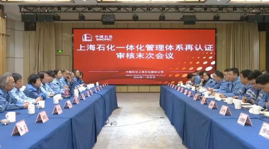 2024年11月29日,中国石化上海石油化工股份有限公司(以下简称“上海石化”)组织召开了质量、环境、职业健康安全、能源及培训管理体系的再认证审核末次会议。上海石化公司党委书记、董事长郭晓军,总经理管泽民,各部室、运行部主要负责人及北京三星九千认证中心有限公司(以下简称“三星九千”)审核组参加了会议,会议的召开标志着上海石化一体化管理体系再认证审核工作顺利完成。
