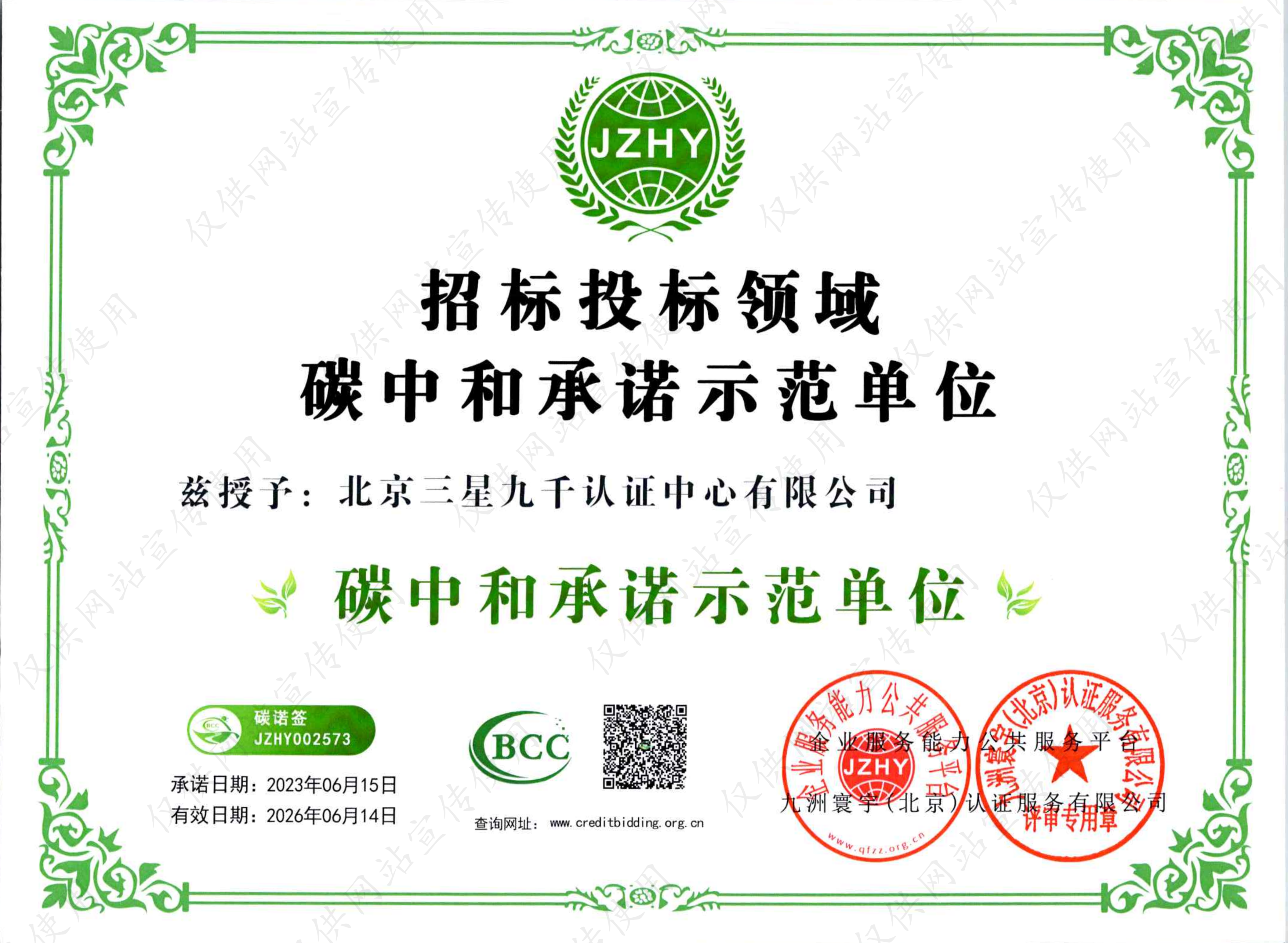 招投标领域碳中和承诺示范单位
