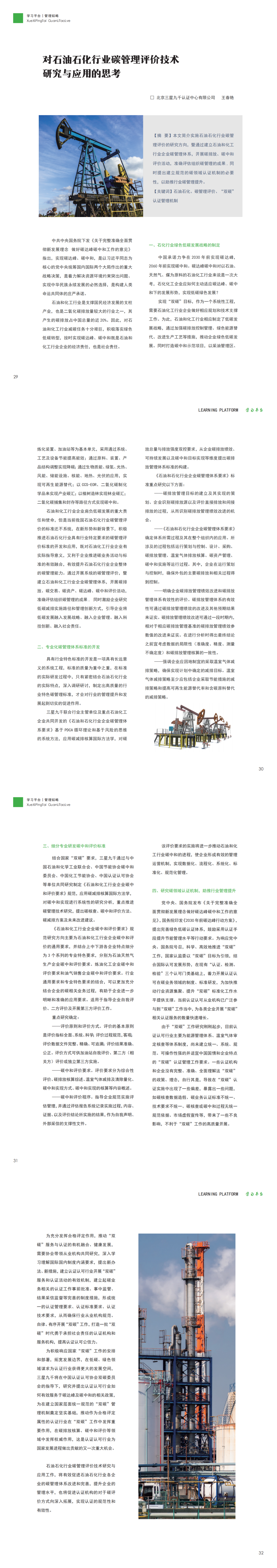 对石油石化行业碳管理评价技术研究与应用的思考