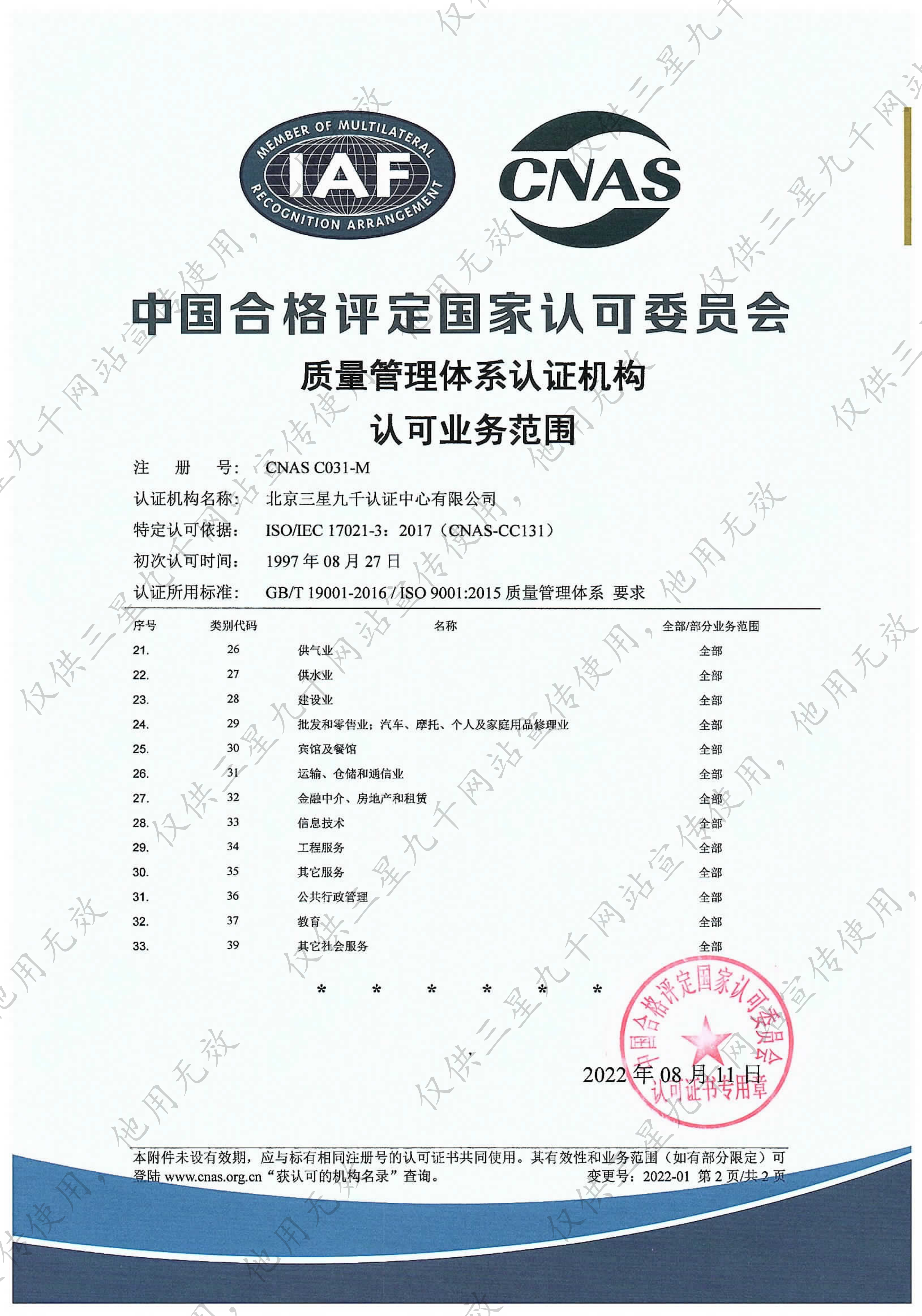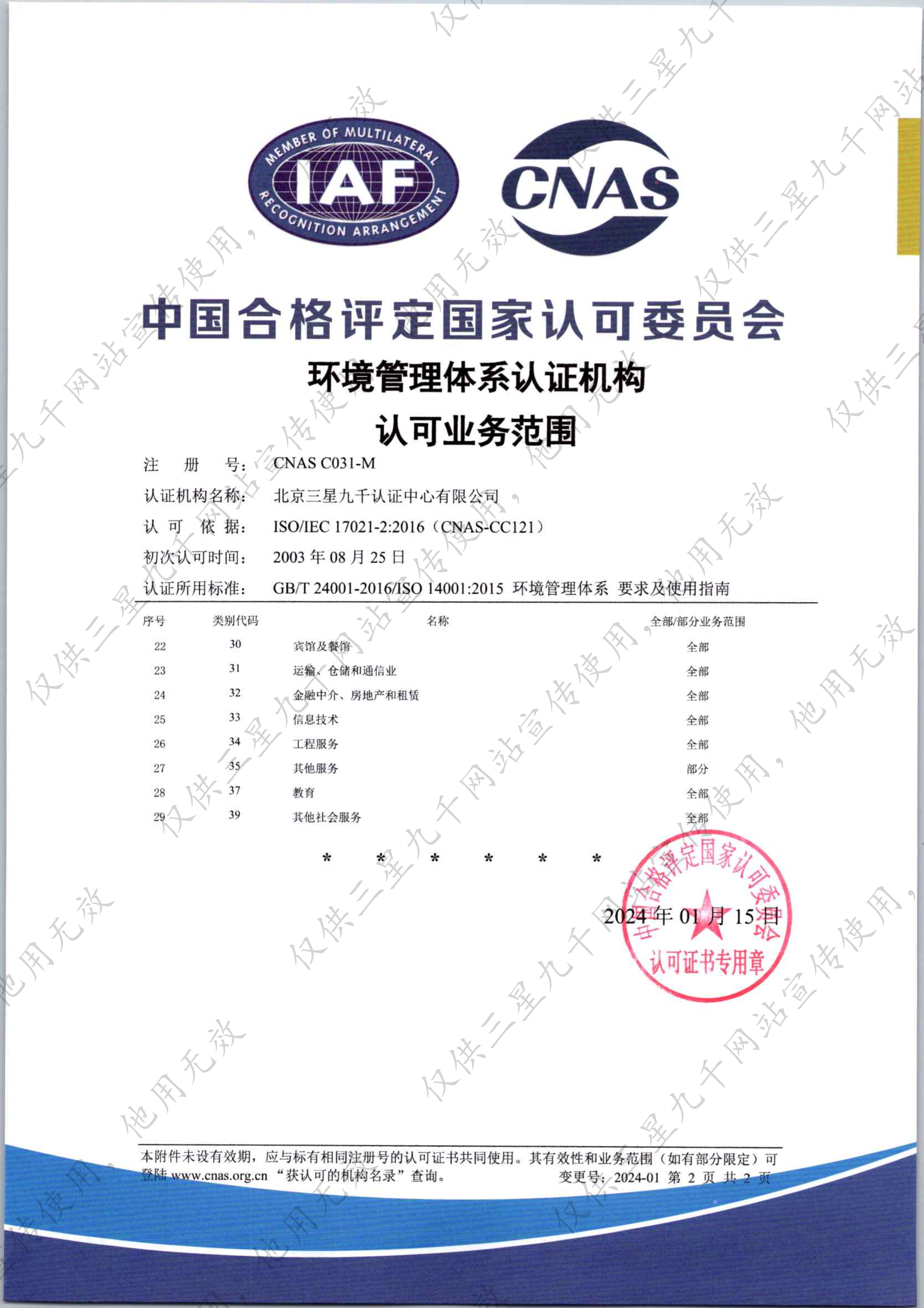 职业健康安全管理体系认证机构认可业务范围证书-2