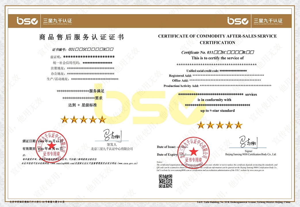 | 商品售后服务认证实施规则 | BSC-03-W-02-SC-2019 | C/0 | 自行制定 | 20250827 | GB/T27922-2011 商品售后服务评价体系 | 中华人民共和国国家质量监督检验检疫总局/中国国家标准化管理委员会 | 20120201 | 点击查看 | ||