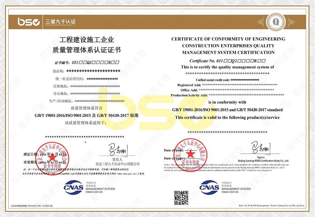 | 工程建设施工企业质量管理体系认证规则 | BSC-03-W-01-EC-2025 | A/0 | 自行制定 | 20250827 | GBT50430-2017工程建设施工企业质量管理规范 | 中华人民共和国住房和城乡建设部/中华人民共和国国家质量监督检验检疫总局 | 20180101 | 点击查看 | ||