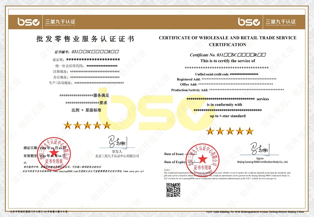 | 服务认证 | 批发零售业服务认证实施规则 | BSC-03-W-01-SC-2019 | C/0 | 自行制定 | 20250827 | BSC-03-W-03-2021 加油(气)站服务认证评价要求 | 北京三星九千认证中心有限公司 | 20210715 | 点击查看 | |