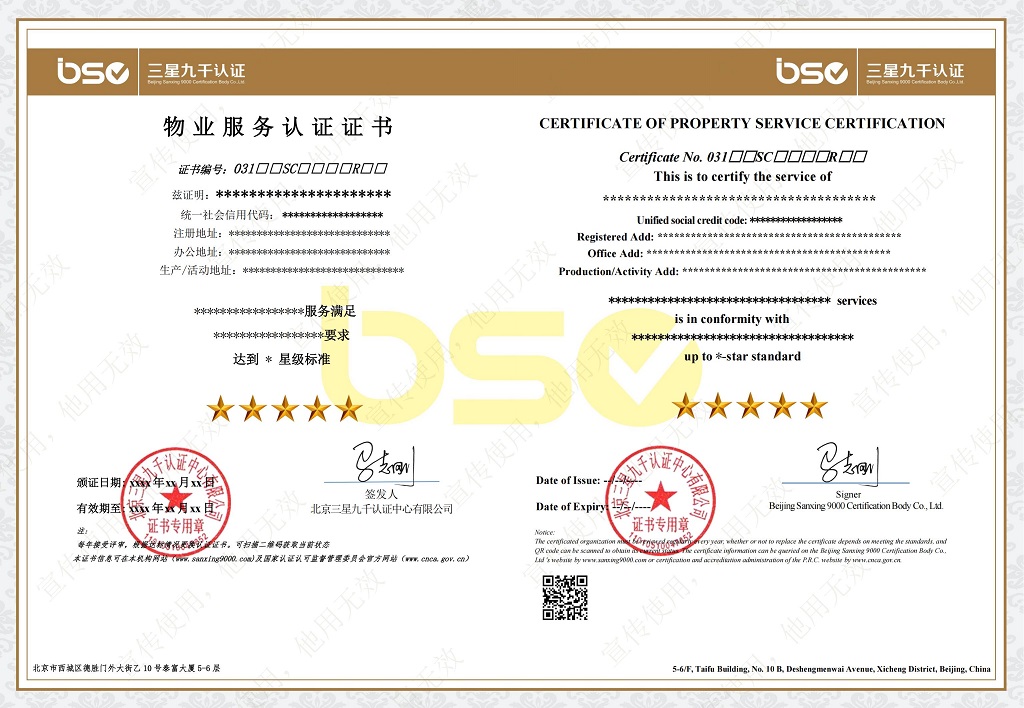 | 物业服务认证实施规则 | BSC-03-W-05-SC-2021 | C/0 | 自行制定 | 20250827 | BSC-03-W-06-SC-2021 物业服务认证要求及评价准则 | 北京三星九千认证中心有限公司 | 20210104 | 点击查看 | ||