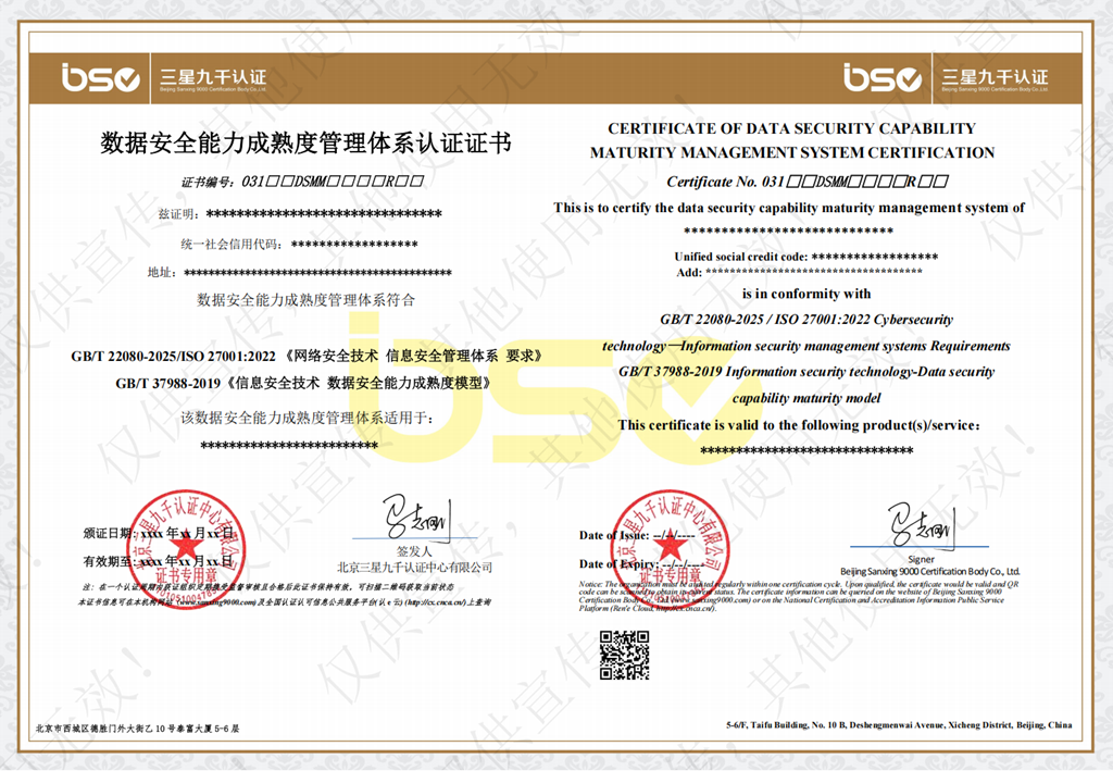 | 数据安全能力成熟度管理体系认证规则 | BSC-03-W-01-DSMM-2025 | B/0 | 自行制定 | 20260302 | GB/T 22080-2025/ISO 27001:2022 《网络安全技术 信息安全管理体系 要求》 | 国家市场监督管理总局/国家标准化管理委员会 | 20260101 | 点击查看 | ||