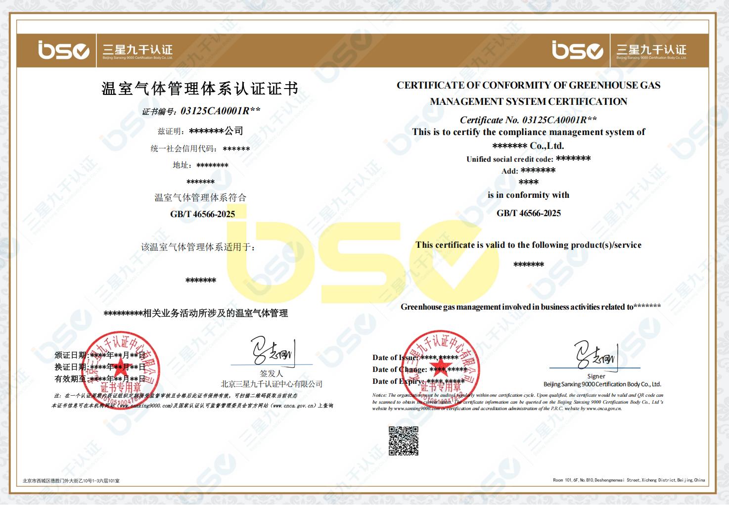 | 温室气体管理体系认证规则 | BSC-03-W-01-CMS-2024 | C/0 | 自行制定 | 20250827 | GB/T 46566-2025 温室气体管理体系 要求 | 国家市场监督管理总局/国家标准化管理委员会 | 20251031 | 点击查看 | ||