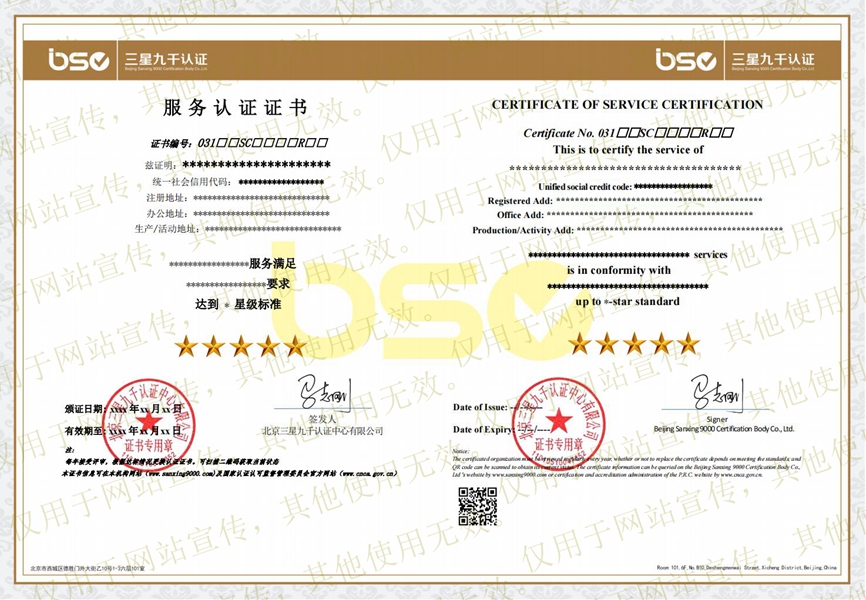 服务认证证书(样本)