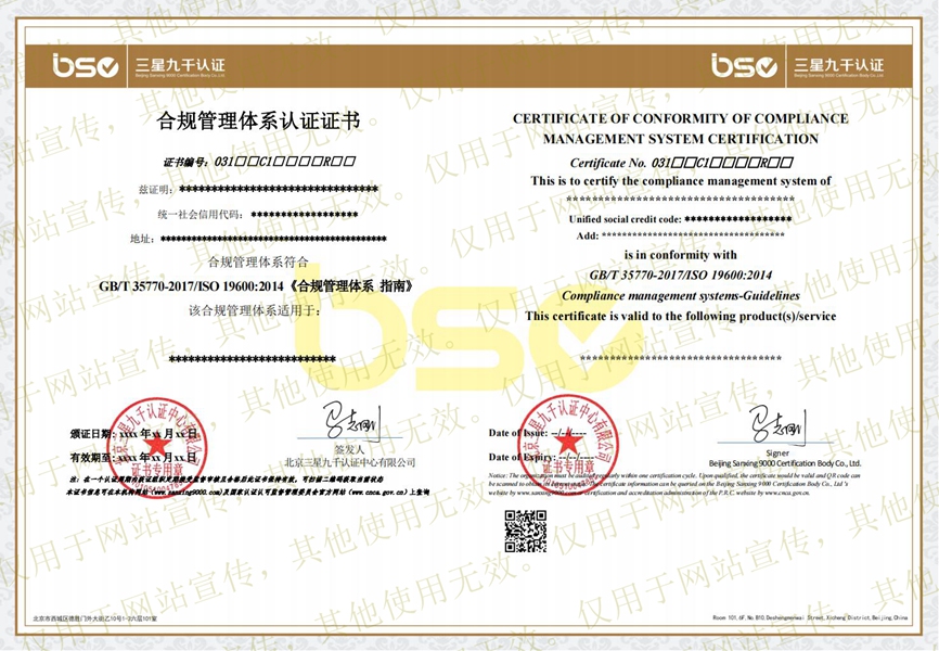 合规管理体系认证证书(样本)