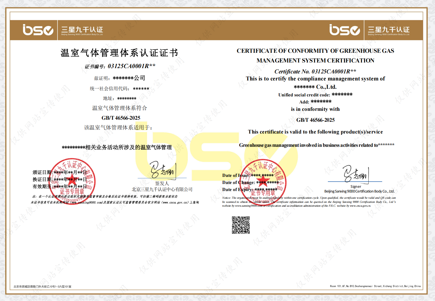 能源管理体系认证证书(样本)
