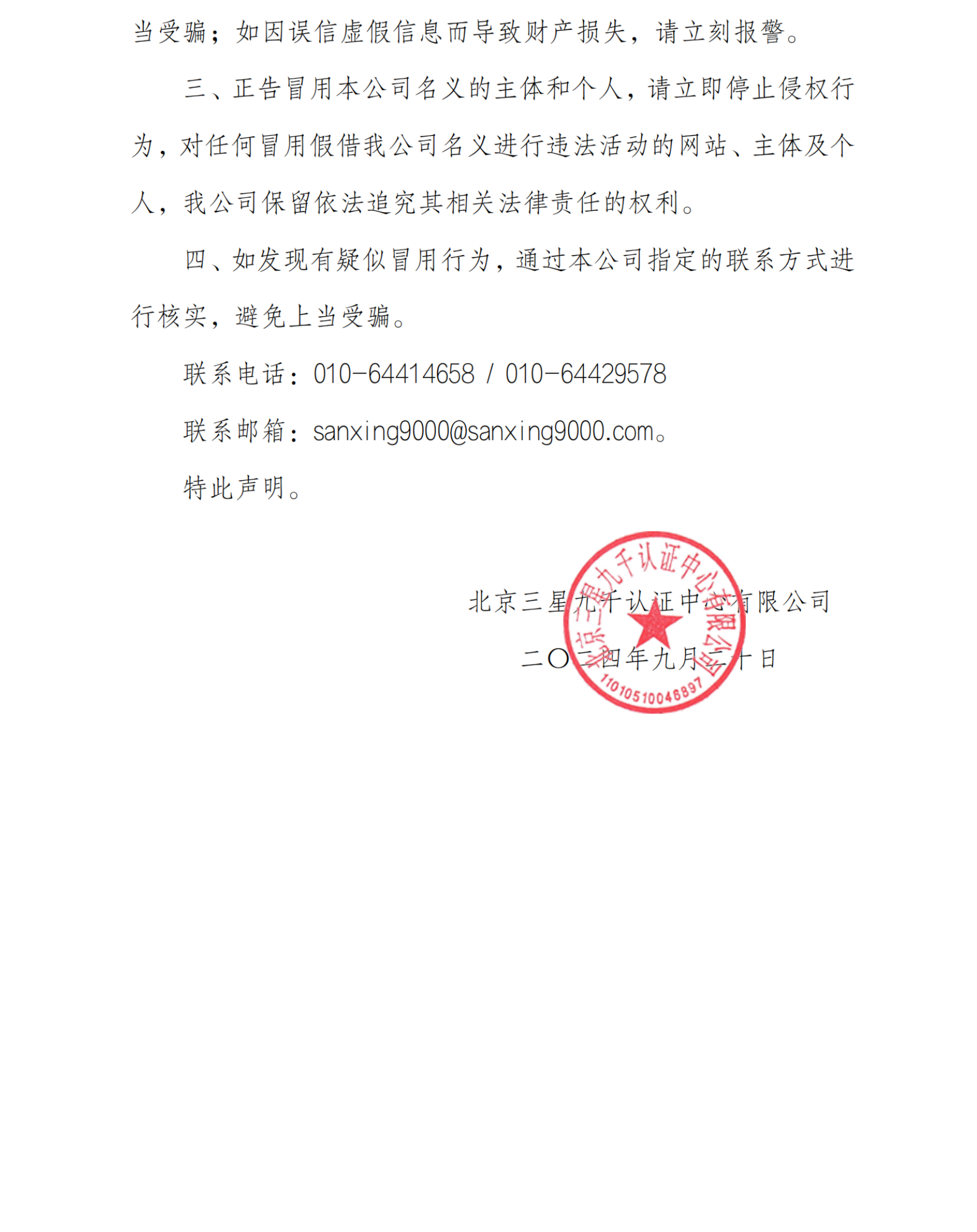 关于谨防不法分子冒用我公司名义实施诈骗行为的声明