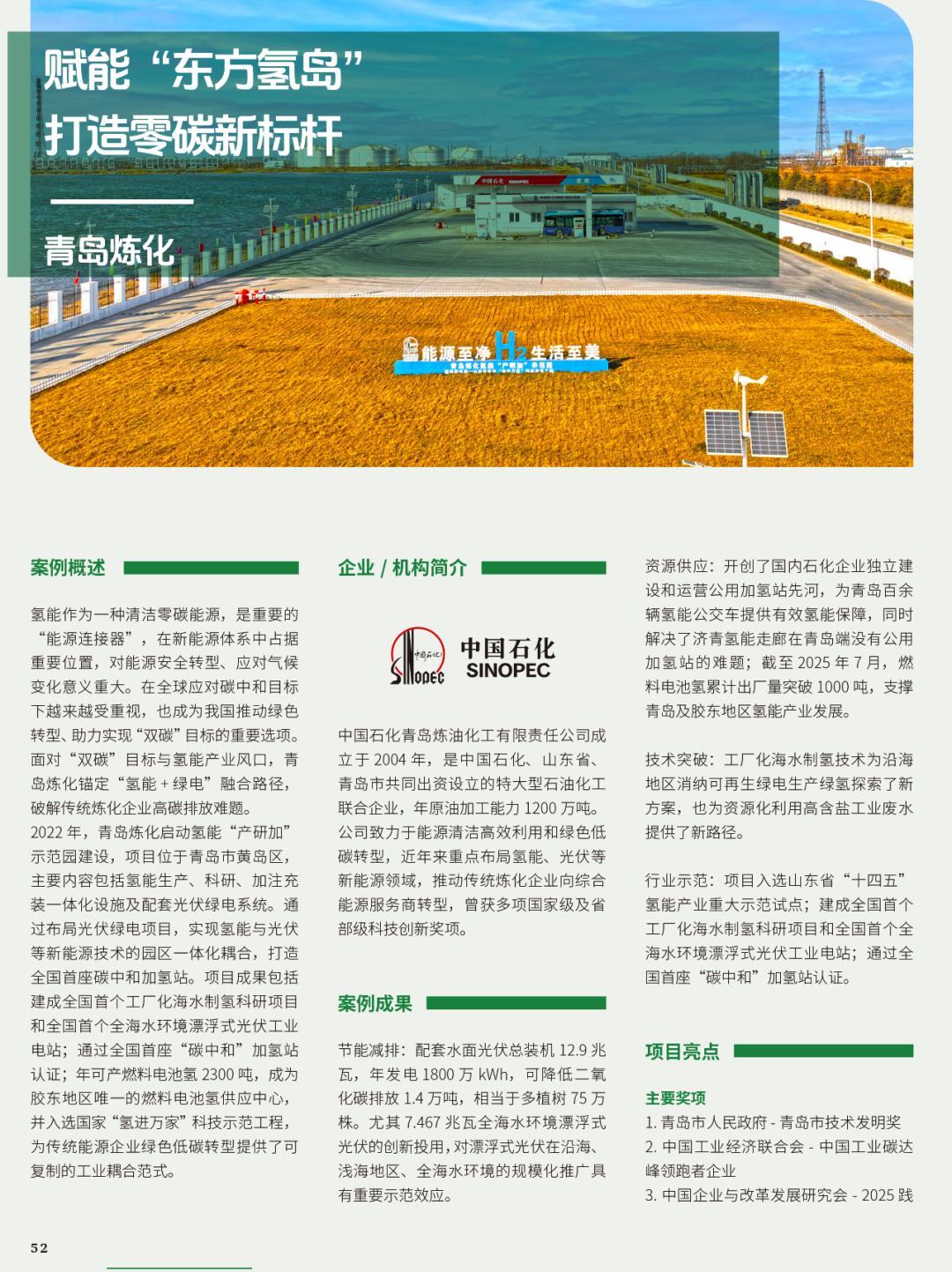 中国石化青岛炼化建成全国首个工厂化海水制氢科研项目和全国首个全海水环境漂浮式光伏工业电站,通过了三星九千全国首座加氢站碳中和评价,成为胶东地区唯一的燃料电池氢供应中心,入选“氢进万家”科技示范工程,为传统能源企业绿色低碳转型提供了可复制的工业耦合范式。
